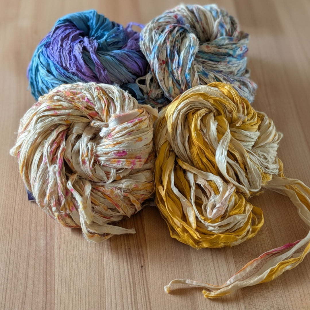 "This was my first experience with Darn Good Yarn. I saw the Reclaimed Sari Medley scarves advertised and gave it a try. They arrived promptly and are beautiful!"