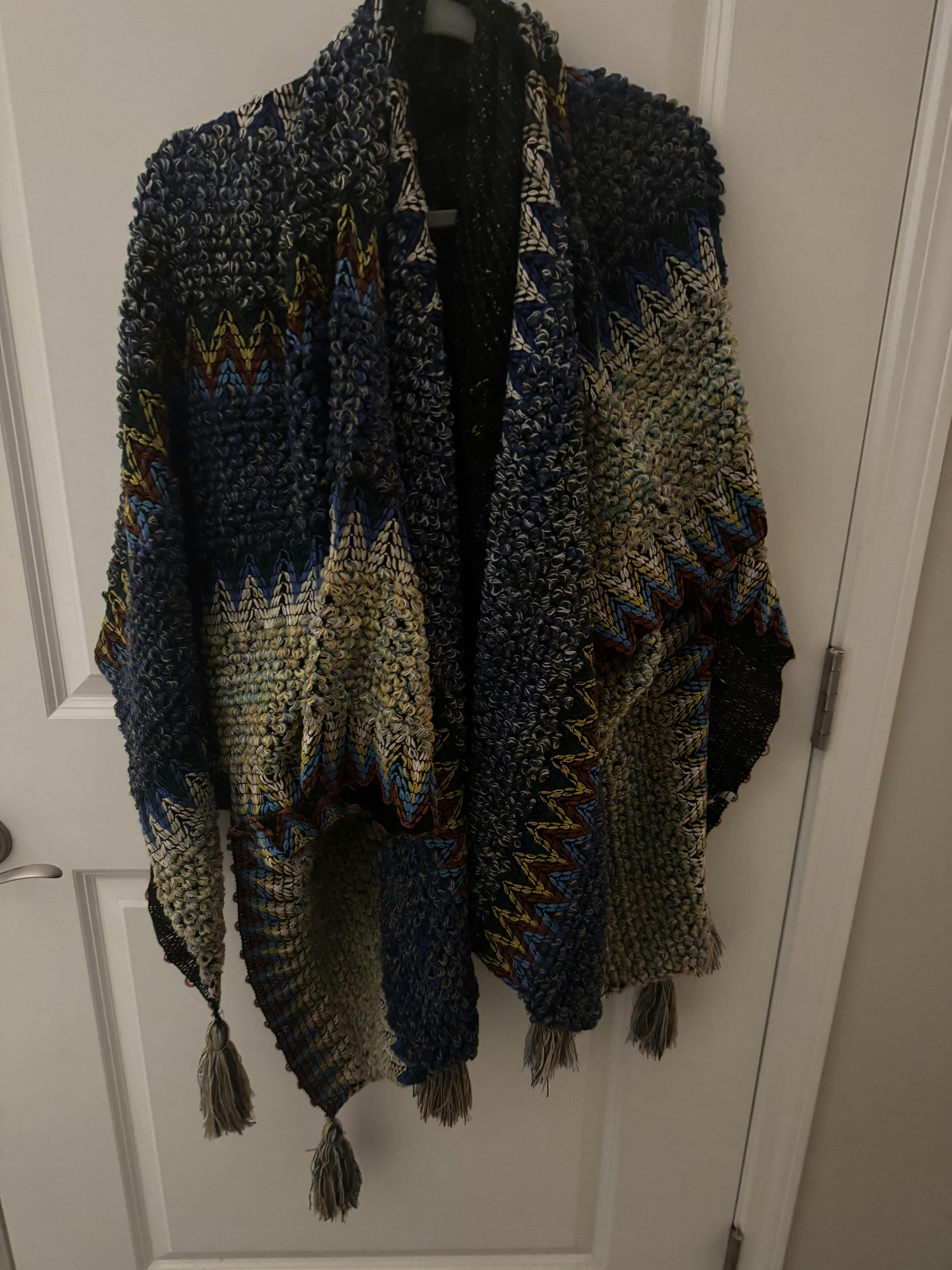 Absolutely lovely! Cozy and colorful and I’m soo happy I purchased! It’s like wearing your coziest blanket but lightweight!